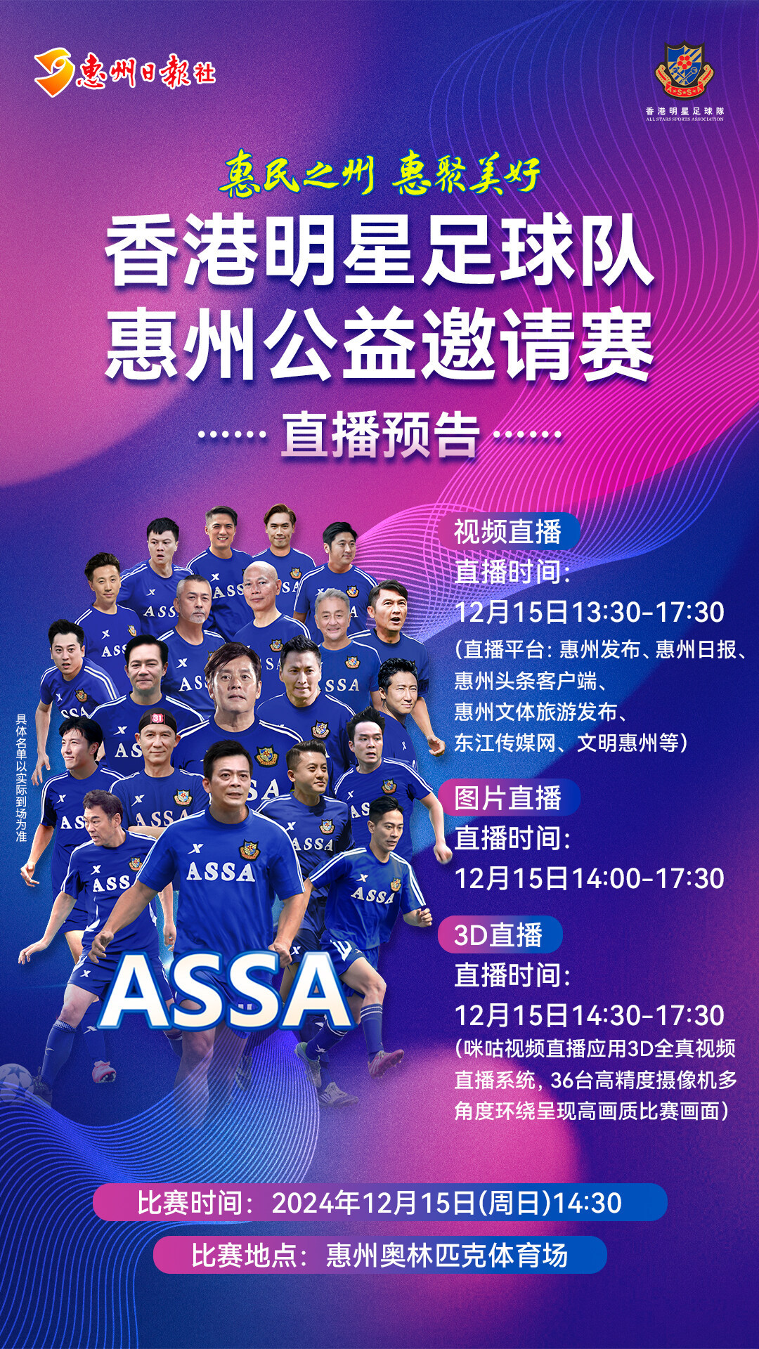 12月15日,“惠民之州 惠聚好意思好”香港明星足球队惠州公益邀请赛将在惠州奥林匹克领略场燃情“开波”。莫得抢到票的市民毋庸蹙悚开yun体育网,记者从赛事组委会获悉,组委会将对本场赛事全程进行视频直播和图片直播,同期还将与中国挪动惠州分公司及中国挪动咪咕公司互助,通过咪咕视频多体式、全标的直播为场外不雅众提供千里浸式不雅看体验。